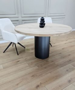 Of je nu een modern, industrieel of Scandinavisch interieur hebt: deze ronde eiken tafel met buis onderstel past moeiteloos in elke woonstijl. Het is een meubelstuk dat opvalt zonder te overheersen.