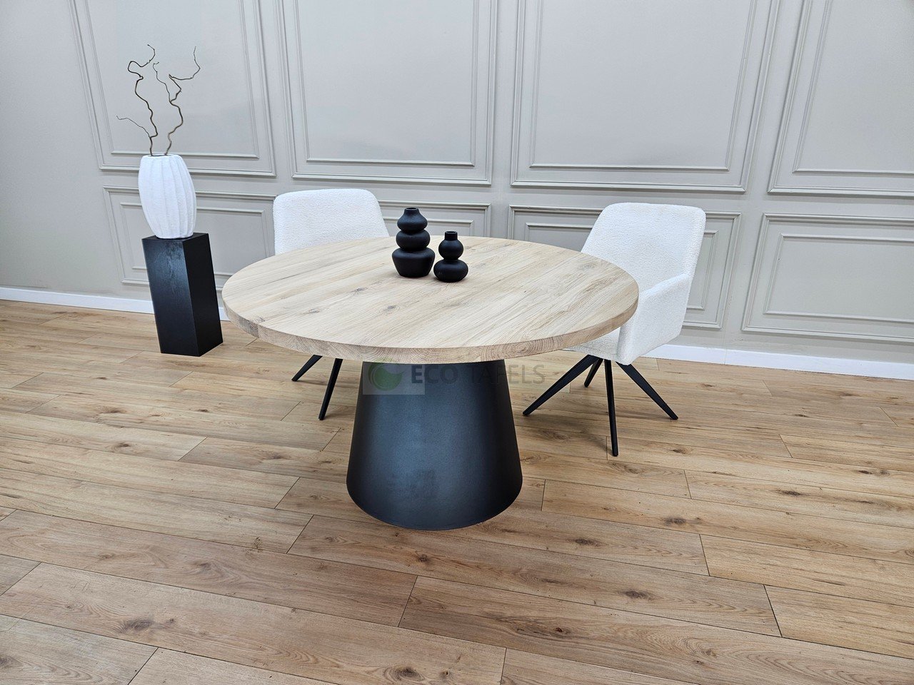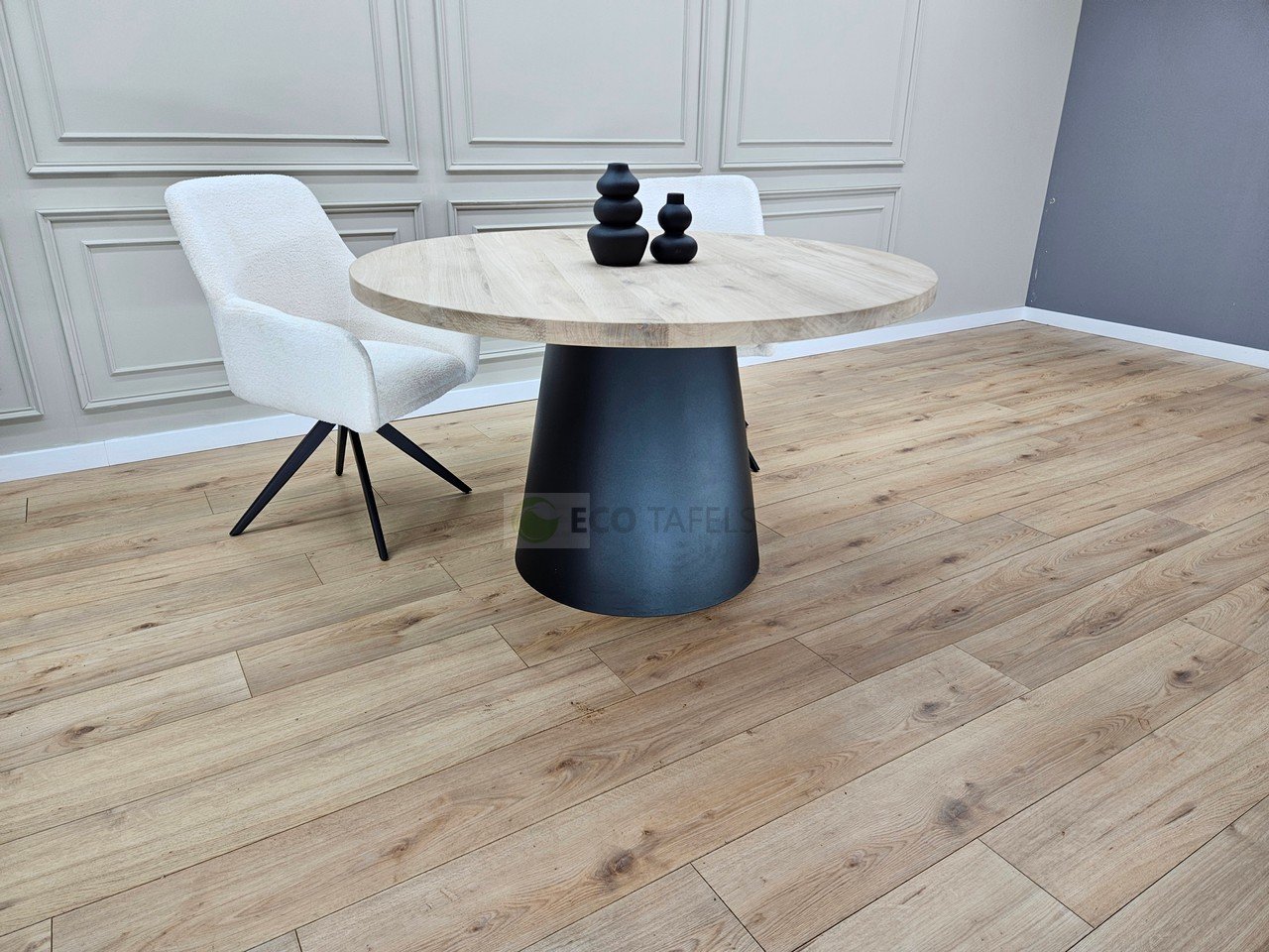 Eiken ronde tafel met Kegel onderstel