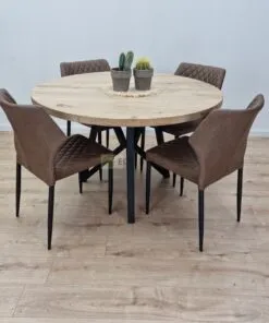 De ronde tafel nodigt uit tot gezelligheid en verbondenheid. Iedereen zit gelijkwaardig aan tafel, zonder scherpe hoeken of kopplaatsen. Perfect voor diners, gesprekken en samenwerkingen.