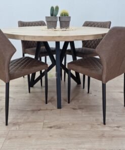 De eiken ronde tafel met vlinder-onderstel combineert natuurlijk eikenhout met een opvallend en speels onderstel dat doet denken aan de vorm van een vlinder. Dit zorgt voor een dynamische uitstraling die zowel stijlvol als functioneel is.