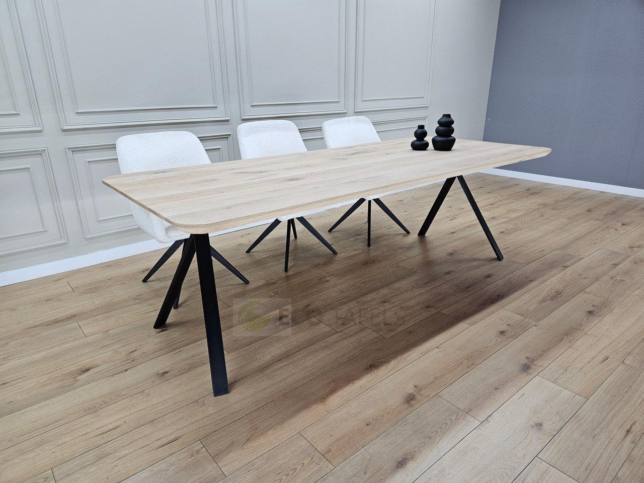 Eiken Tafel Afgeronde Hoeken met Hoge Kik Poten – Slank, Stijlvol en Functioneel