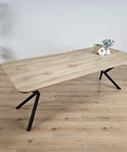 De eiken tafel afgeronde hoeken met Kik-Poten combineert de warme uitstraling van massief eikenhout met een krachtig en robuust onderstel in de vorm van Kik-Poten. Het afgeronde tafelblad zorgt voor een zachte, uitnodigende look, terwijl de Kik-Poten zorgen voor stevigheid en een stoere uitstraling.
