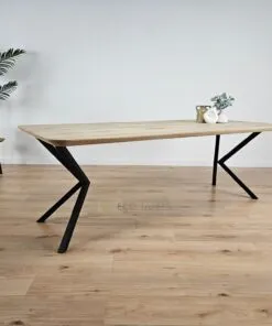 De combinatie van natuurlijk hout en het robuuste Kik-Poten onderstel maakt deze tafel tot een tijdloos en stijlvol meubelstuk. Het past uitstekend in moderne, industriële en landelijke interieurs.