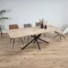 Het tafelblad is vervaardigd uit duurzaam massief eikenhout met een warme kleur en karaktervolle nerf. De hoogwaardige afwerking garandeert een lange levensduur en een blijvende schoonheid.