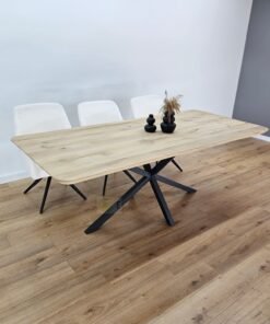 De eiken tafel afgeronde hoeken met Matrixpoot K5 combineert de natuurlijke warmte van massief eikenhout met een stevig en strak Matrixpoot K5 onderstel. Het afgeronde tafelblad zorgt voor een zachte, toegankelijke uitstraling, terwijl het Matrixpoot K5 frame de tafel stabiliteit en een moderne look geeft.