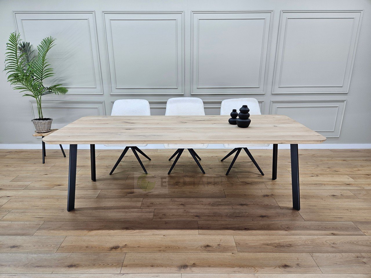 Eiken Tafel Afgeronde Hoeken met Schuine Poten – Natuurlijk, Elegant en Stevig
