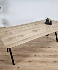 Het tafelblad is gemaakt van duurzaam massief eikenhout met een warme kleur en karaktervolle nerf. De zorgvuldig aangebrachte afwerking zorgt ervoor dat deze tafel lang meegaat en mooi blijft, zelfs bij intensief gebruik.
