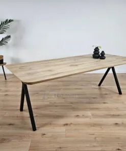 De eiken tafel afgeronde hoeken met Scissor-Poten combineert het warme karakter van massief eikenhout met een opvallend en stevig onderstel in de vorm van schaarpoten. Het afgeronde tafelblad zorgt voor een zachte, uitnodigende uitstraling, terwijl de Scissor-Poten de tafel een stoere en unieke look geven.