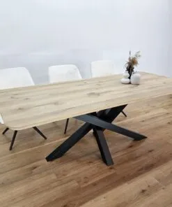Deze eikenhouten tafel met Twist onderstel K8 is ideaal voor eetkamer, kantoor of werkruimte. Het onderstel biedt voldoende beenruimte en zorgt voor stabiliteit, zonder in te leveren op stijl.