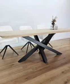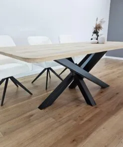 Eiken Tafel Afgeronde Hoeken met Twist Onderstel K8 – Modern en Dynamisch