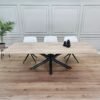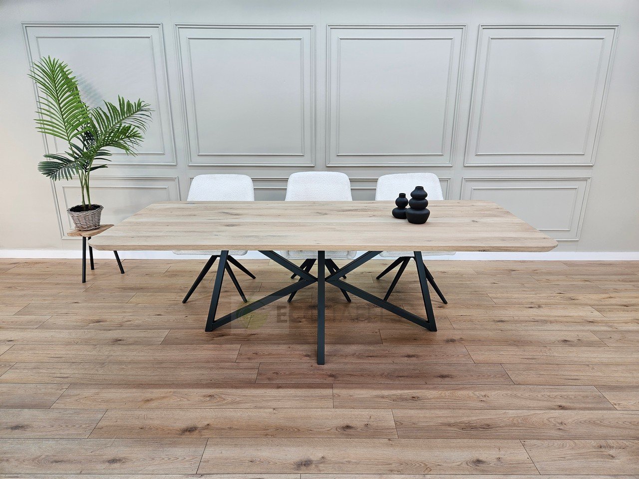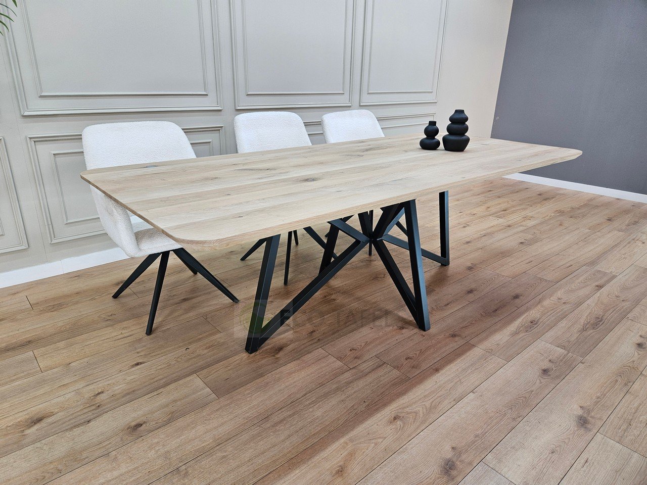 Eiken Tafel Afgeronde Hoeken Vlinder Onderstel – Elegant, Organisch en Stabiel