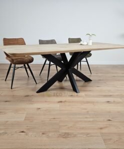 De combinatie van natuurlijk eikenhout en het smalle matrixpoot onderstel maakt deze tafel tot een tijdloos en stijlvol meubelstuk. Het past naadloos in moderne, minimalistische en industriële interieurs.