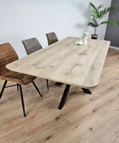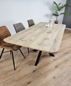 Eiken Tafel met Afgeronde Hoeken en Smalle Matrixpoot – Modern en Slank