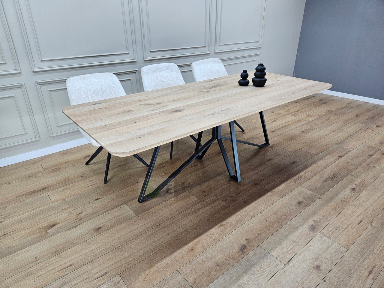 Eiken tafel met afgeronde hoeken met Libelle onderstel