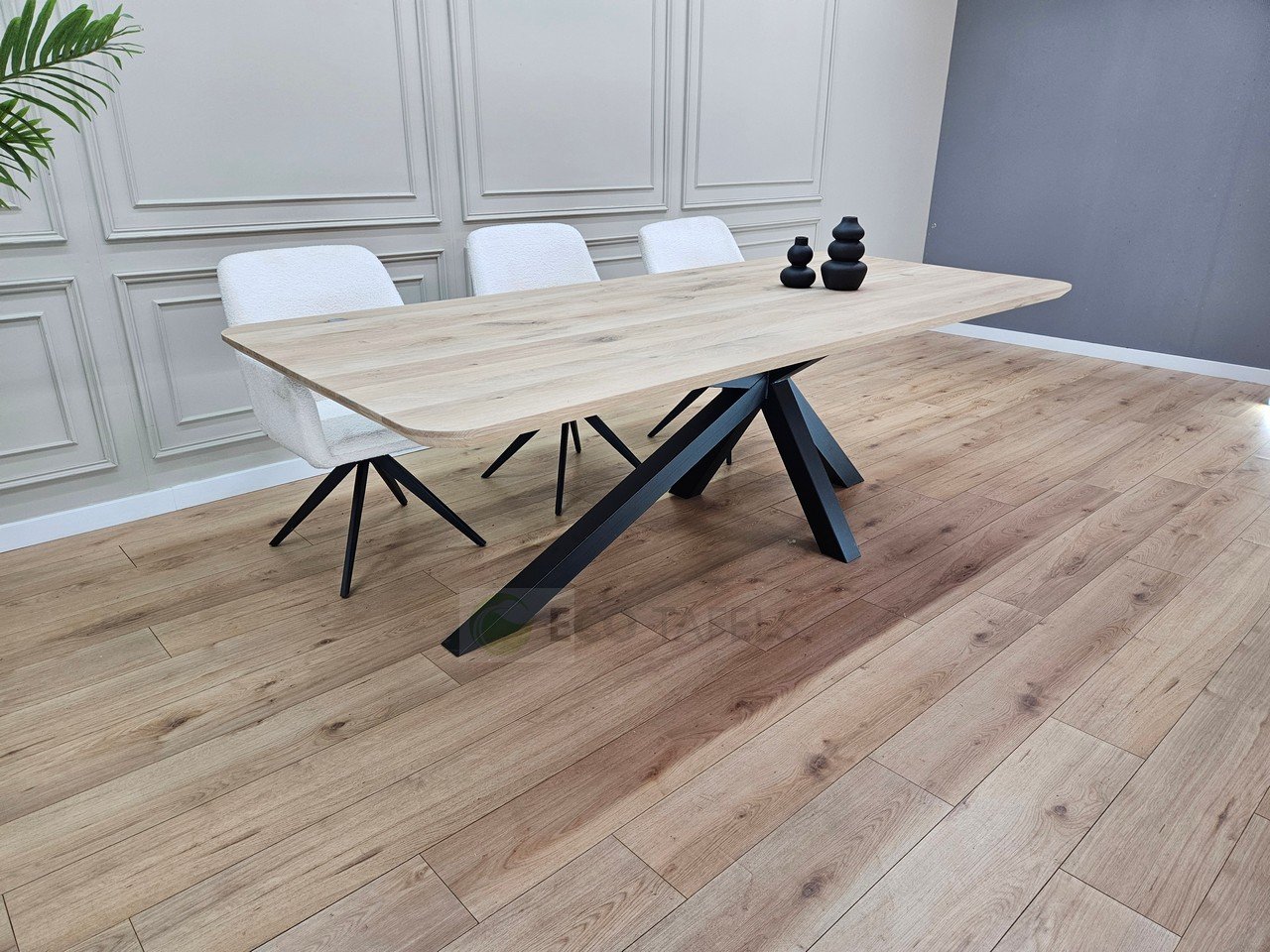 Eiken Tafel met Afgeronde Hoeken met Matrix-K Onderstel – Strak, Modern en Stevig