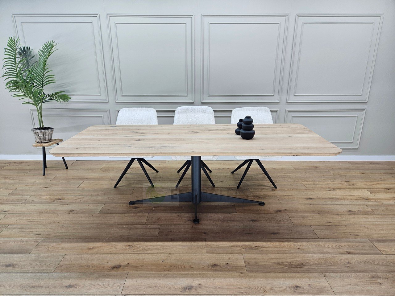 Eiken Tafel met Afgeronde Hoeken met Octo Onderstel – Tijdloos Design met een Moderne Twist