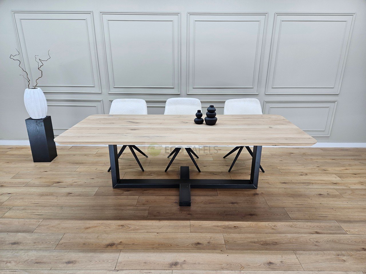 Eiken Tafel met Afgeronde Hoeken met Plus Frame – Modern en Strak Design